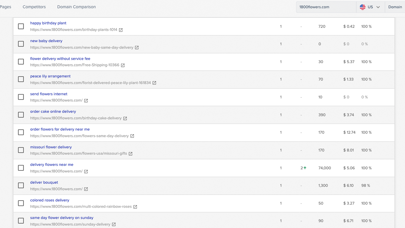 • Compare keyword rankings of two or more domains